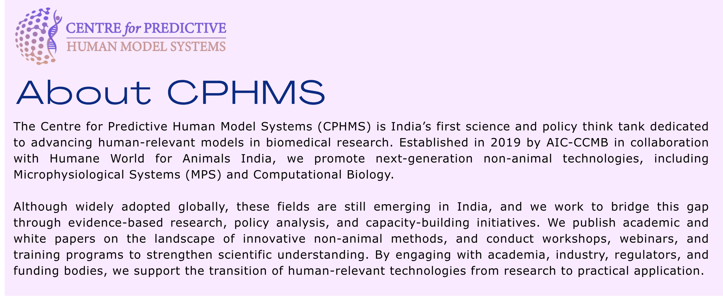 The Centre for Predictive Human Model Systems (CPHMS), the Central Drugs Standard Control Organization (CDSCO), and the Indian Council of Medical Research (ICMR) in July 2024, conducted a workshop titled Human-Relevant Frontiers of Drug Safety and Efficacy (HuSAFE).